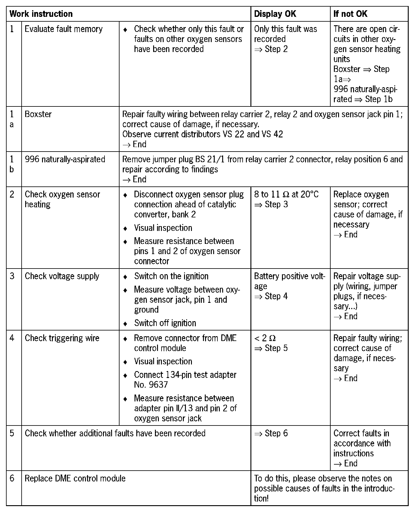 NOTE: Do not use contact spray on the oxygen sensor plug connections as this may cause irreparable damage to the wiring (contamination of the oxygen sensor via the reference air channel).