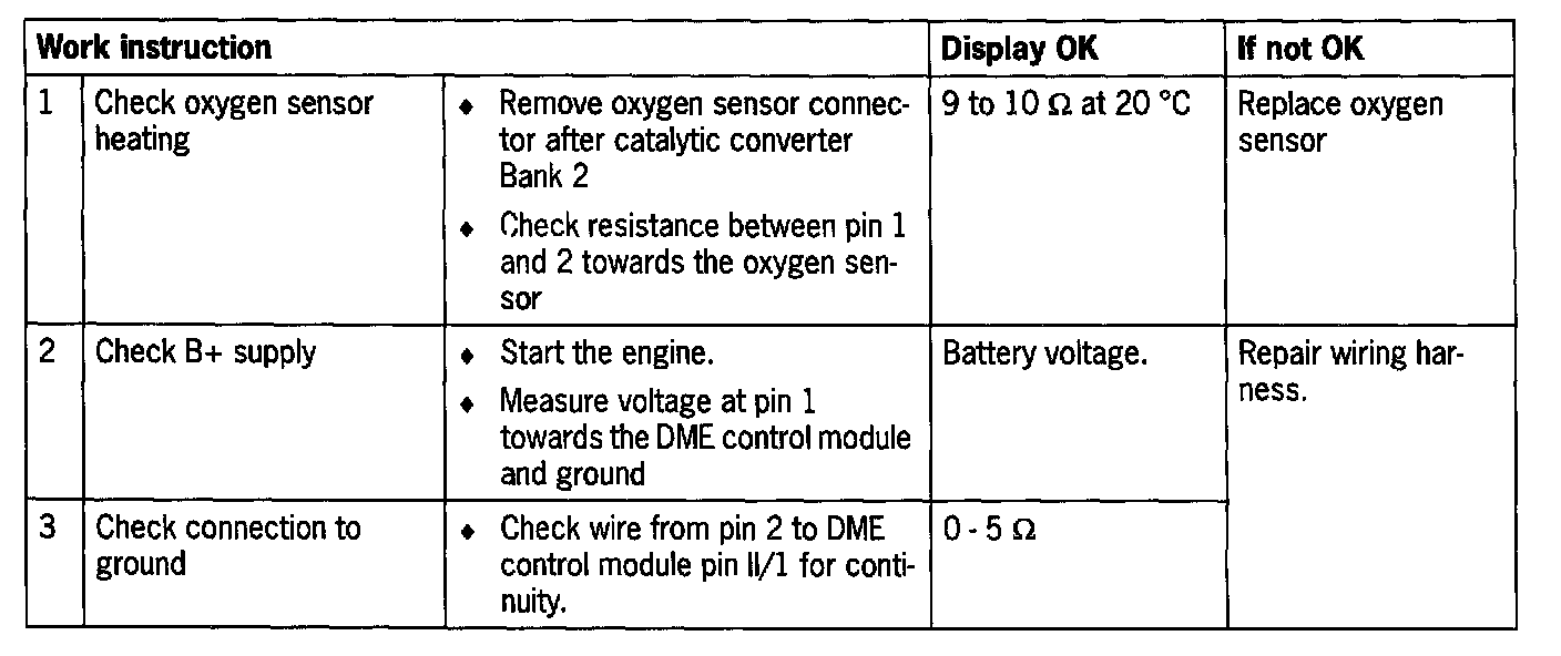 - Resistance of the oxygen sensor heating too great