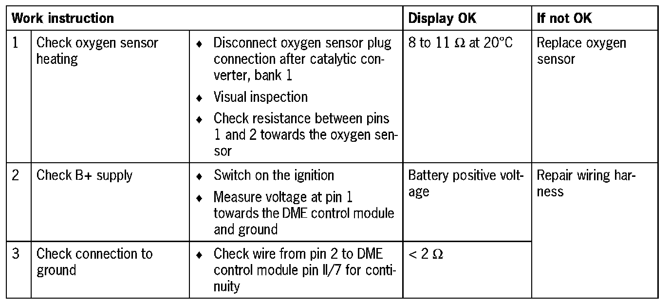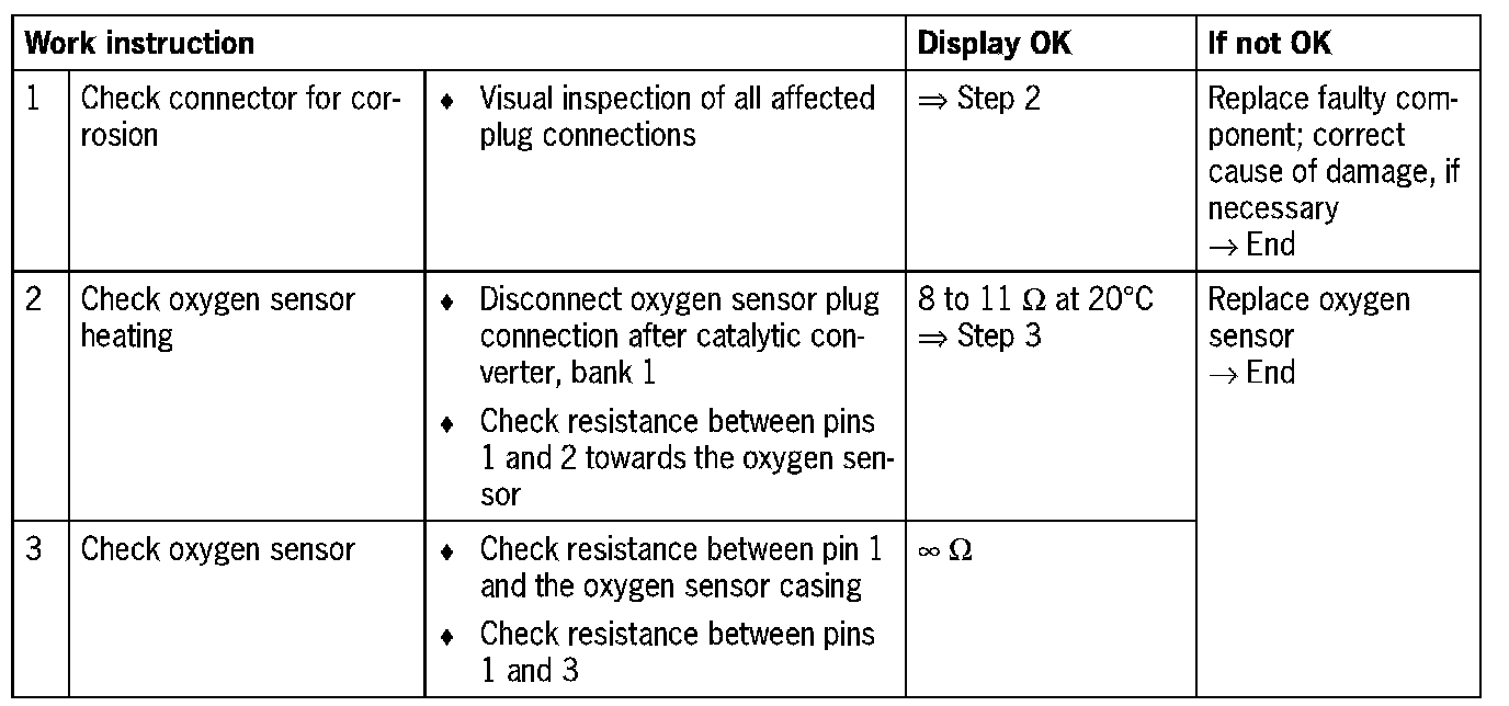 - Oxygen sensor faulty (heating)