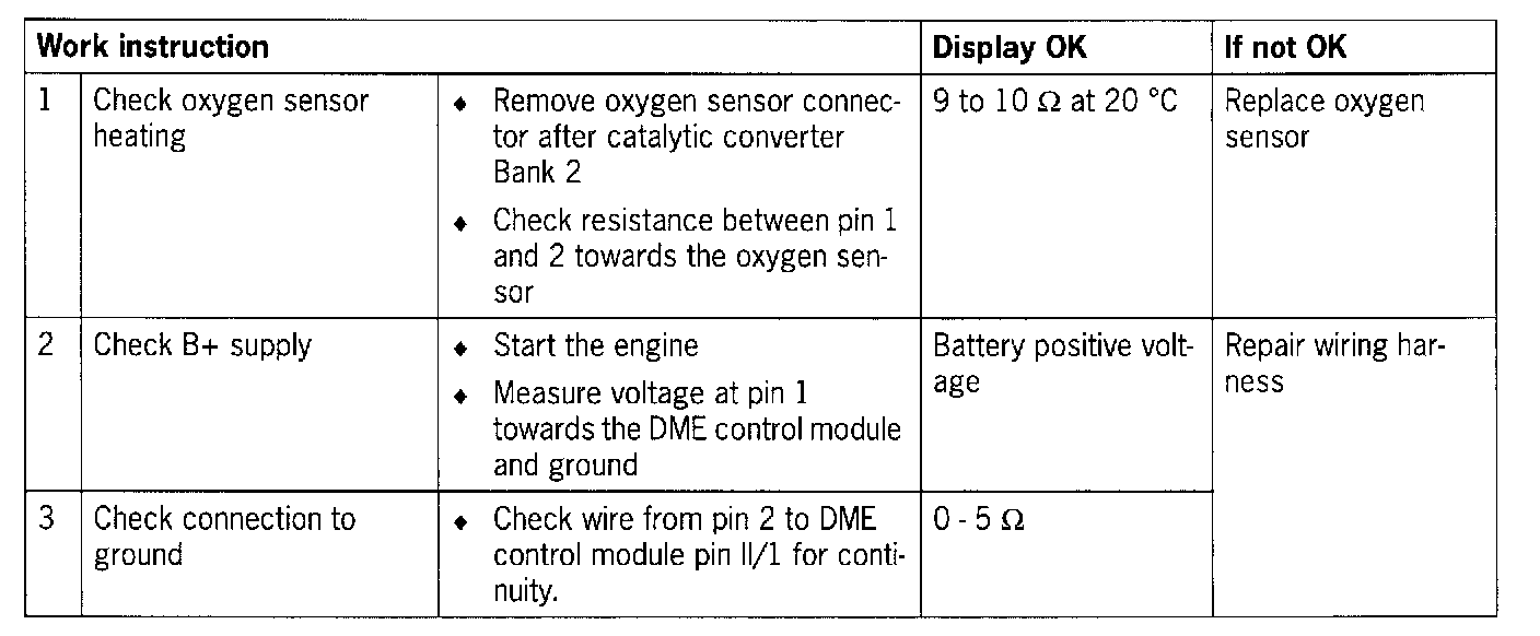 - Resistance of the oxygen sensor heating too great