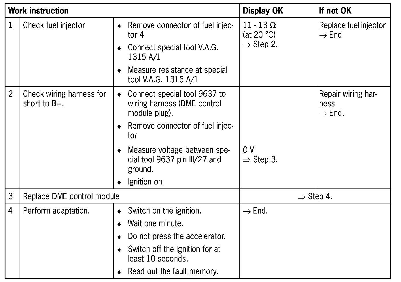 NOTE: Short to B+ causes the fuel injector to be continually closed.