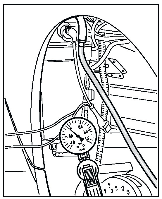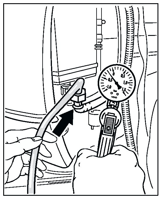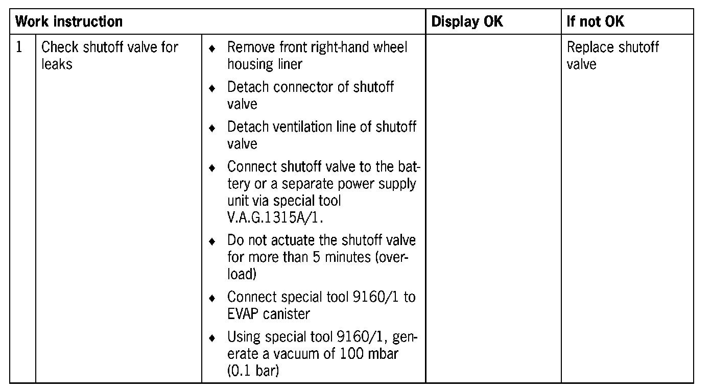 - If no leaks are found, a gauge pressure of max. 100 mbar (0.1 bar) can be generated at the EVAP canister at the connection to the tank using special tool 9160/1, in order to increase the escape of fuel vapours.