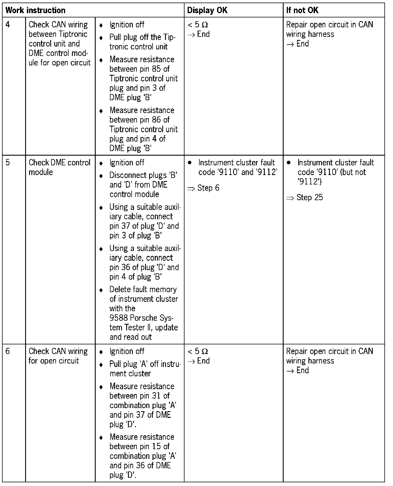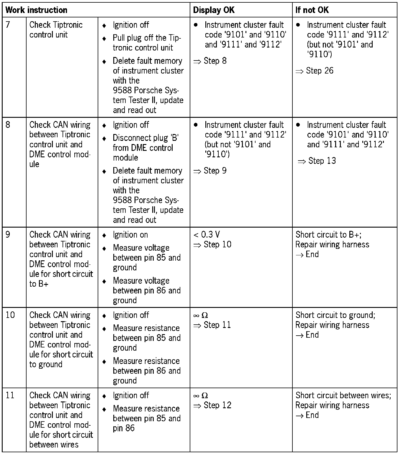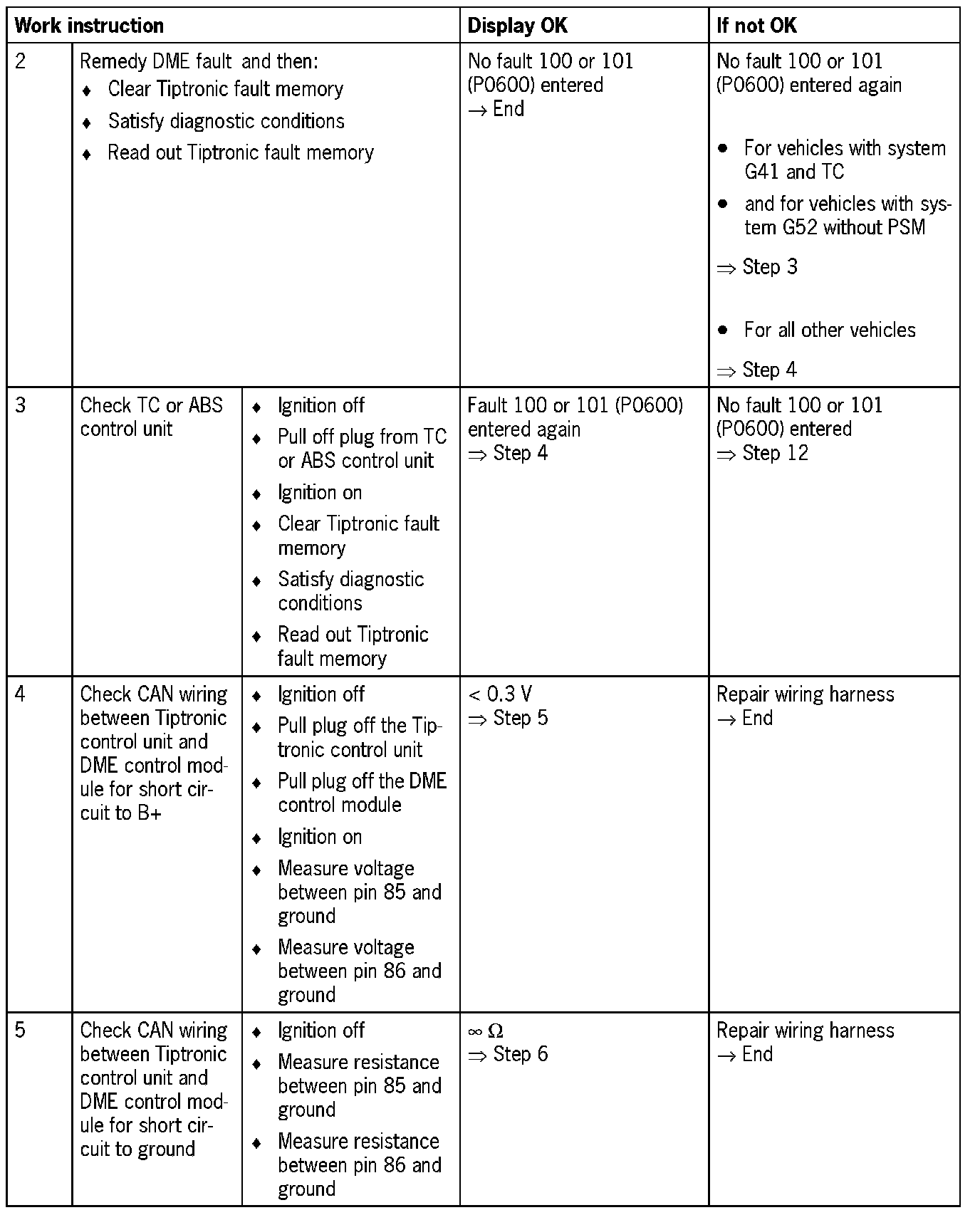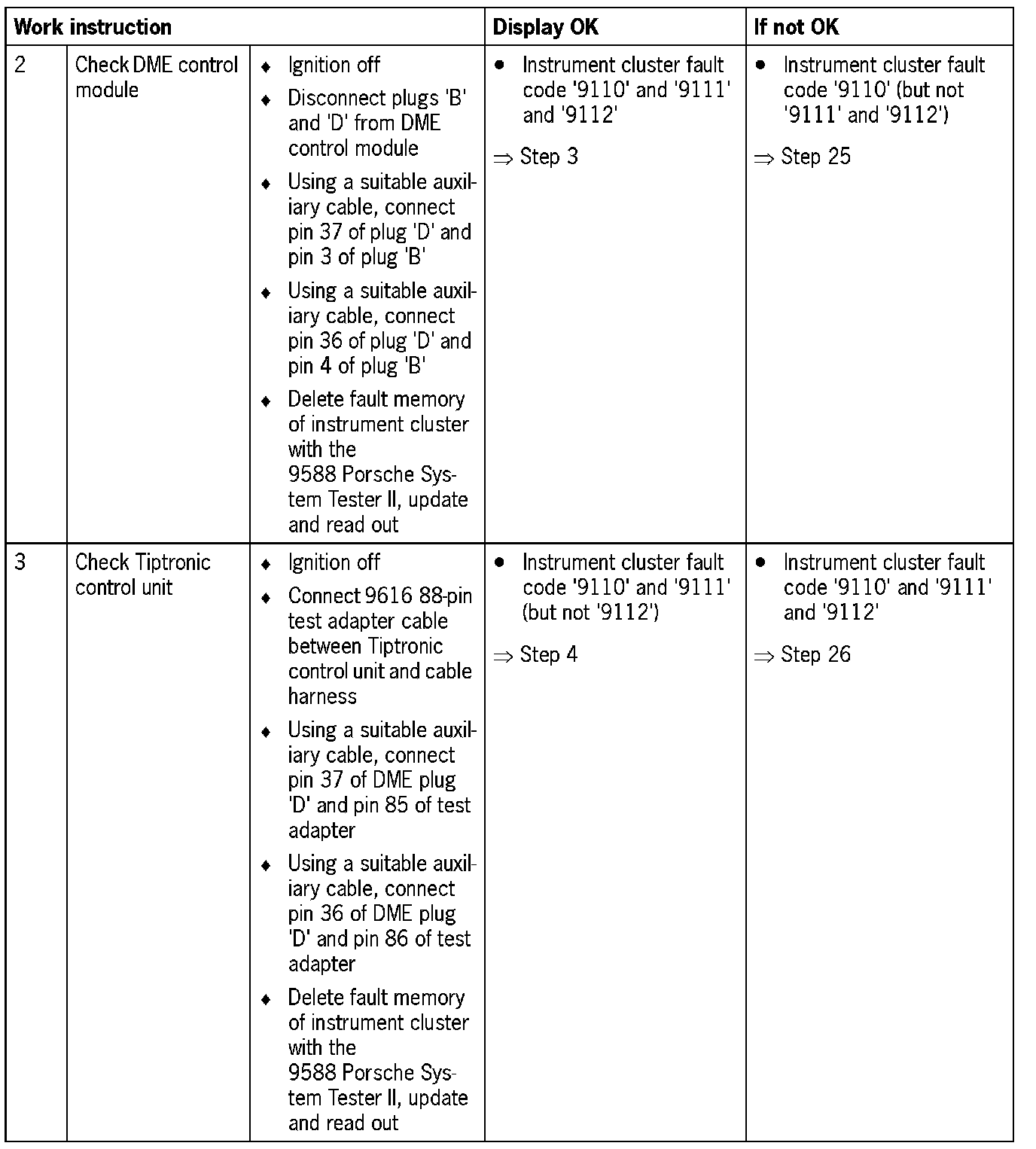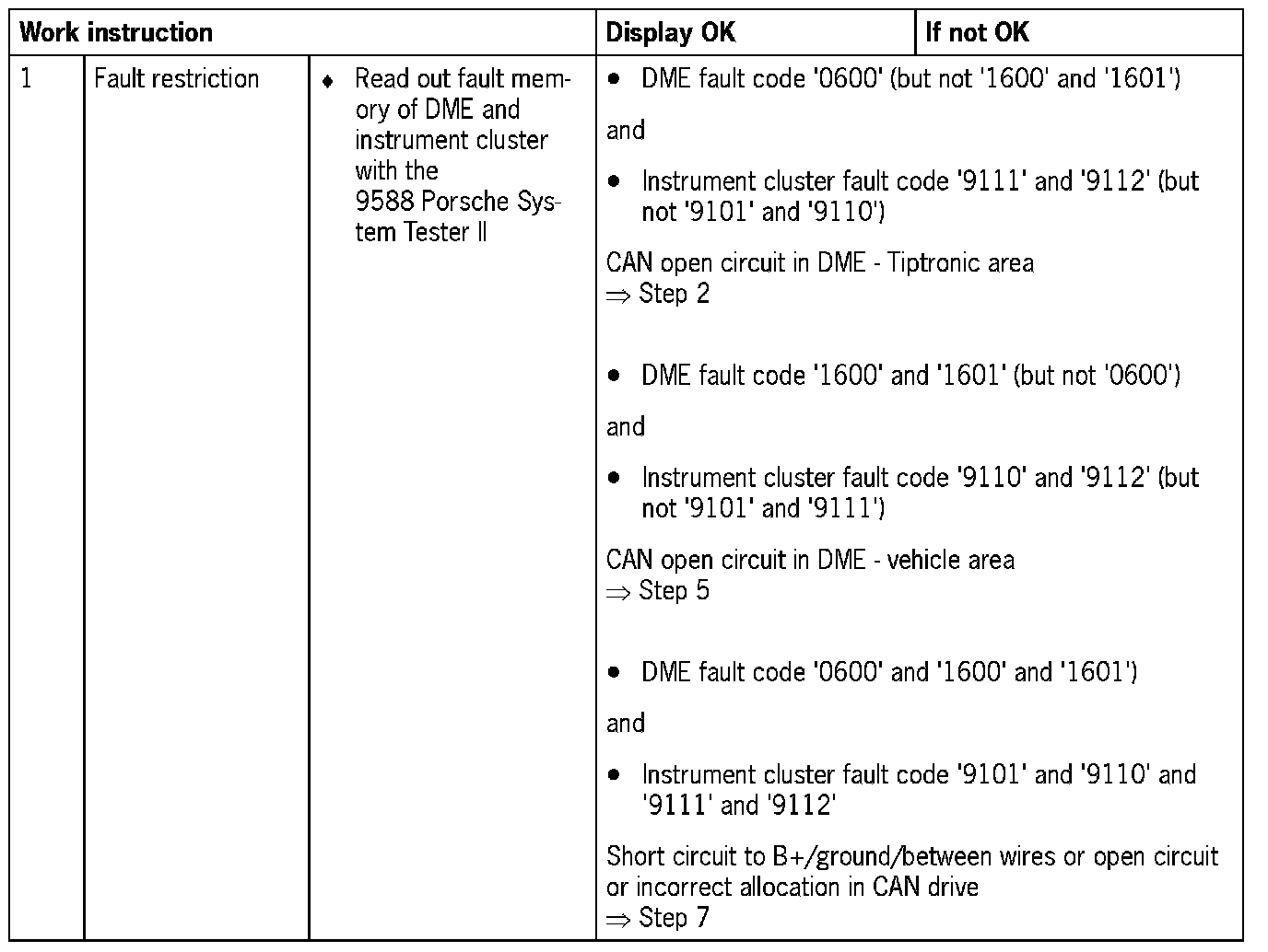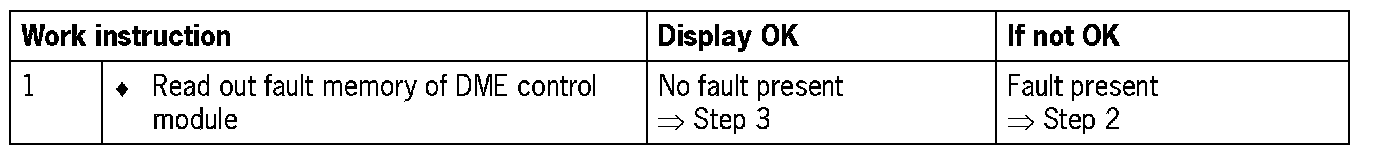 NOTE: For some test steps, the diagnosis conditions will not entirely be satisfied. Switching on the ignition is then sufficient. However, it may be that not all the fault codes listed appear.