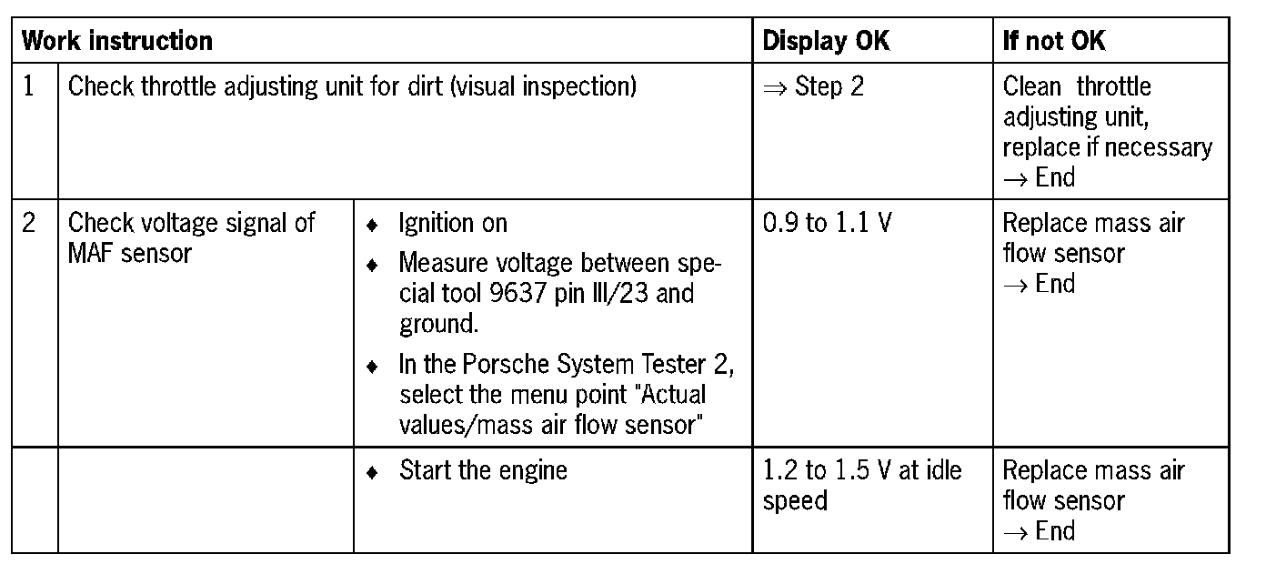 NOTE: In case of a defect in the MAF sensor, this fault must also be stored in the fault memory.