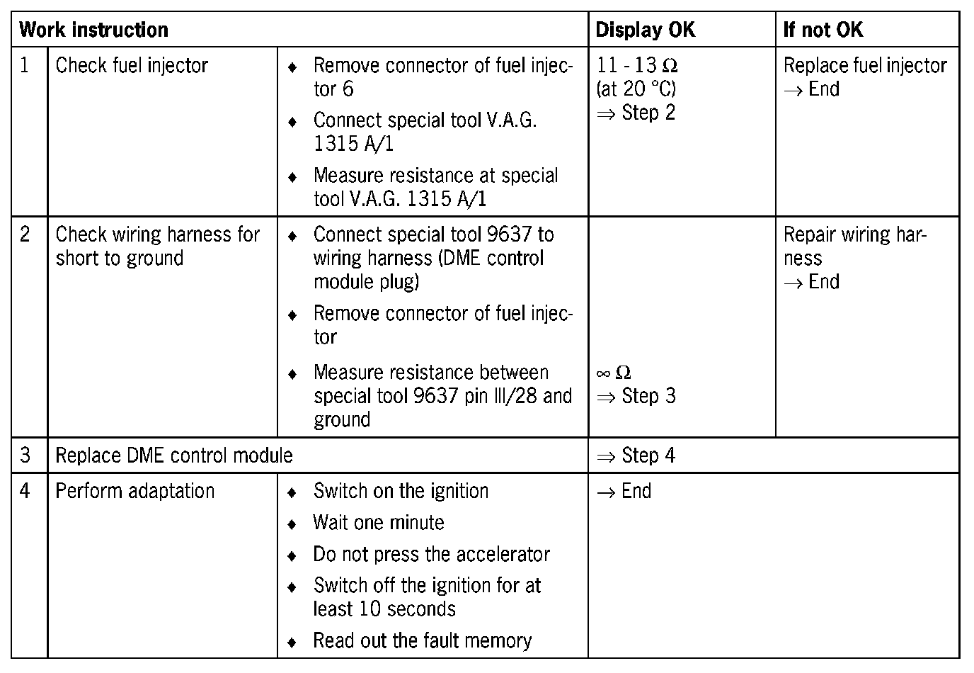 NOTE: Short to ground causes the fuel injector to be permanently open.