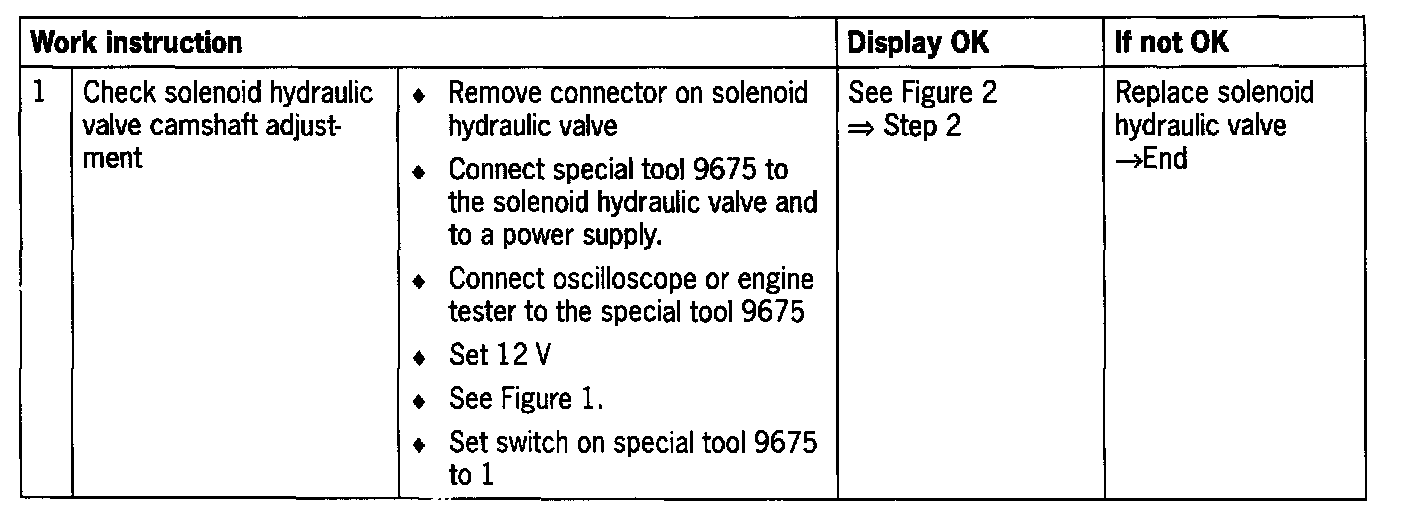 NOTE: Solenoid hydraulic valve is not triggered, camshaft does not switch into late position