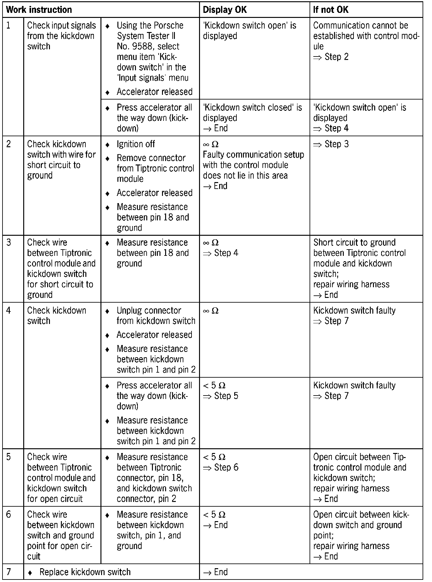 - Kickdown switch faulty