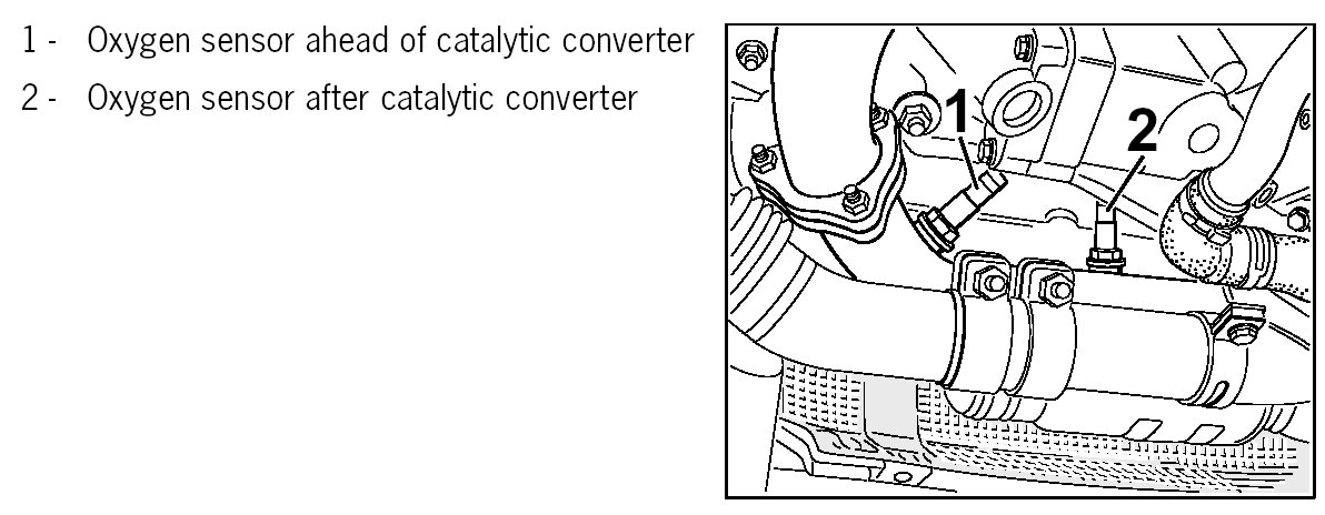 Oxygen sensors ahead of and after catalytic converter