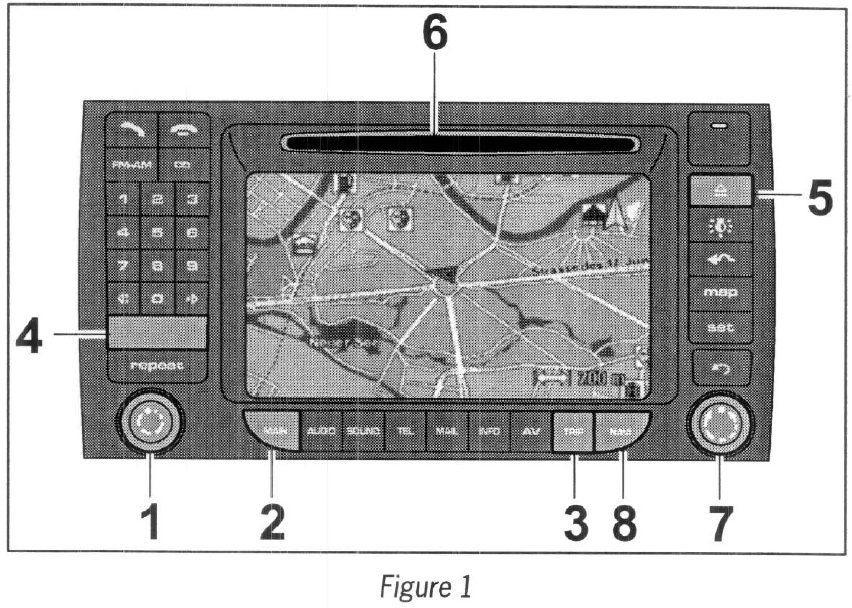 3.2 Press the NAVI button (--> Figure 1 -8-) and confirm the navigation system warning message by pressing the ROTARY KNOB (--> Figure 1 -7-).