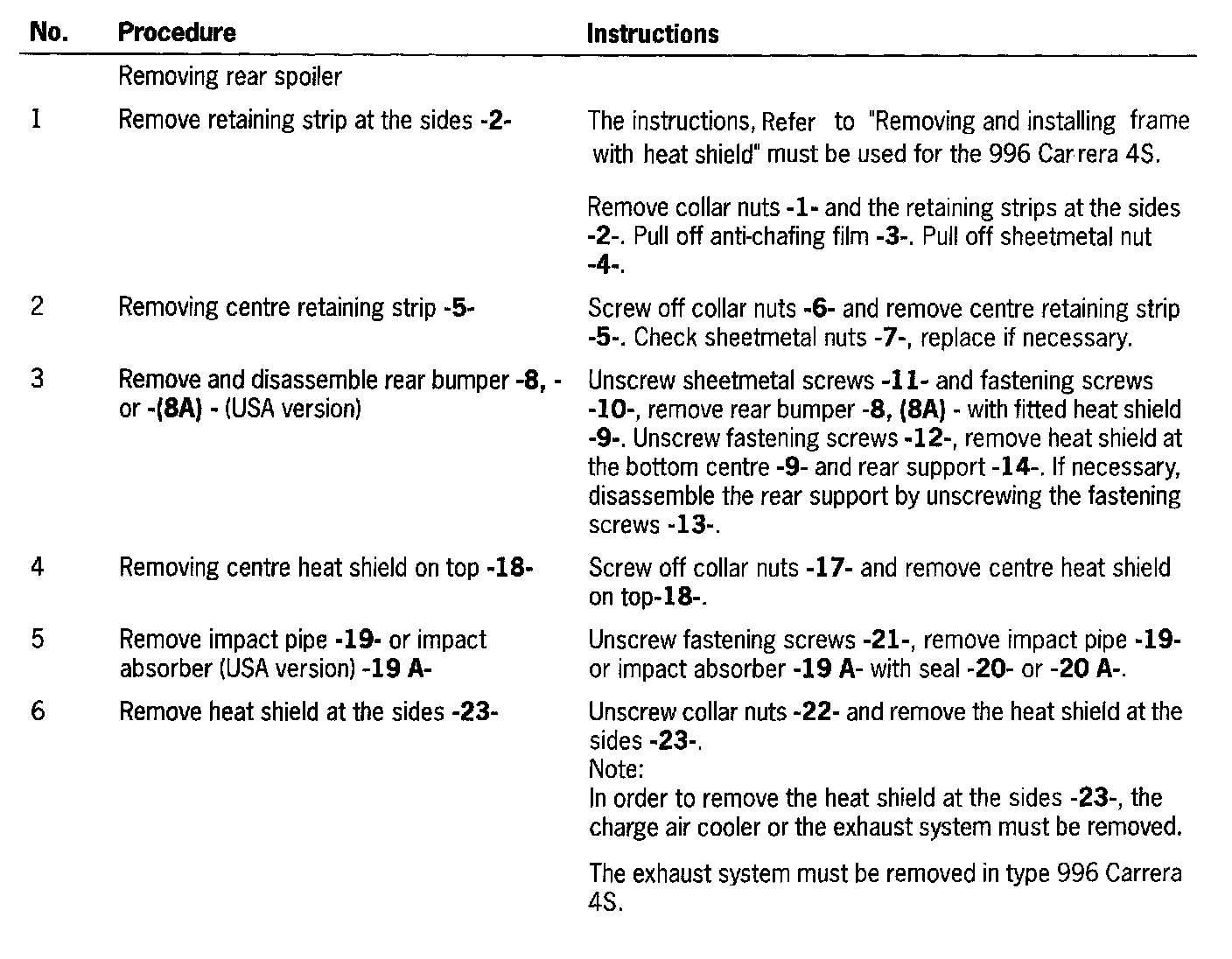 - Check heat shields for deformation, bonding (detachment of the aluminium layers), tears and missing or damaged sealing strips.