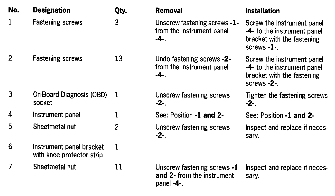 Removing And Installing The Instrument Panel