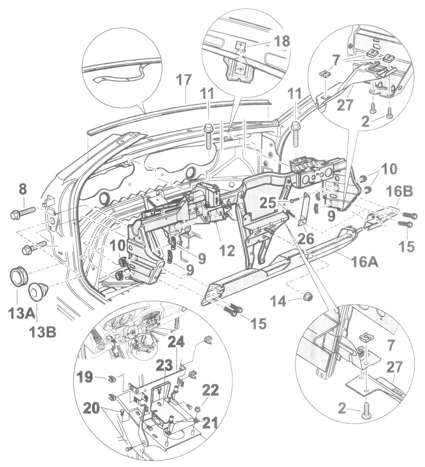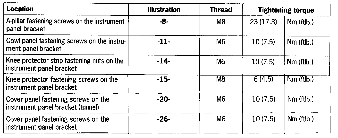 NOTE: Before removing the instrument panel bracket, the instrument panel must be disassembled.