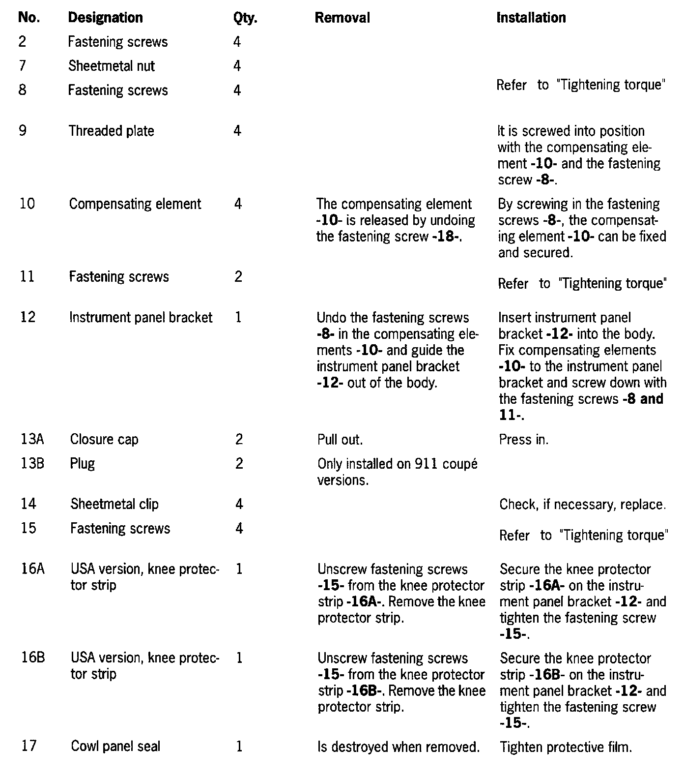 Tightening Torques