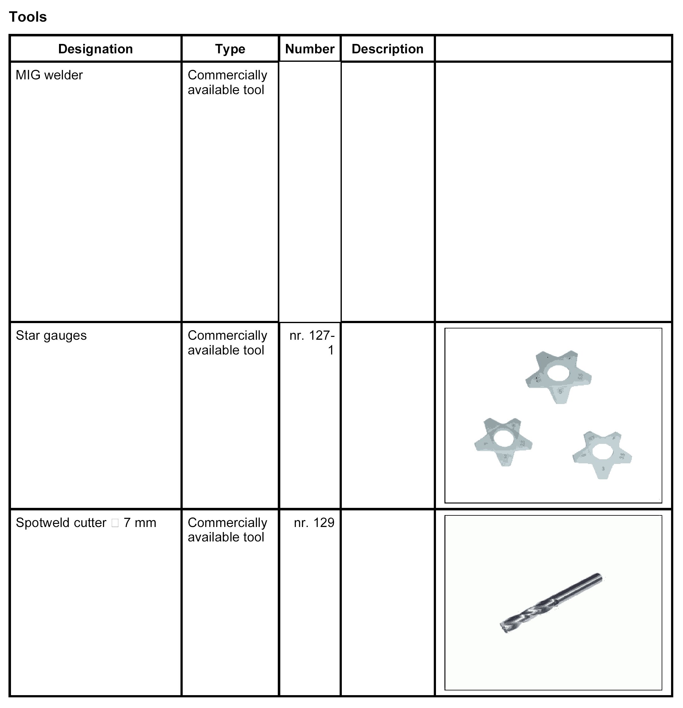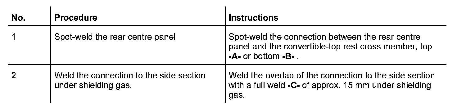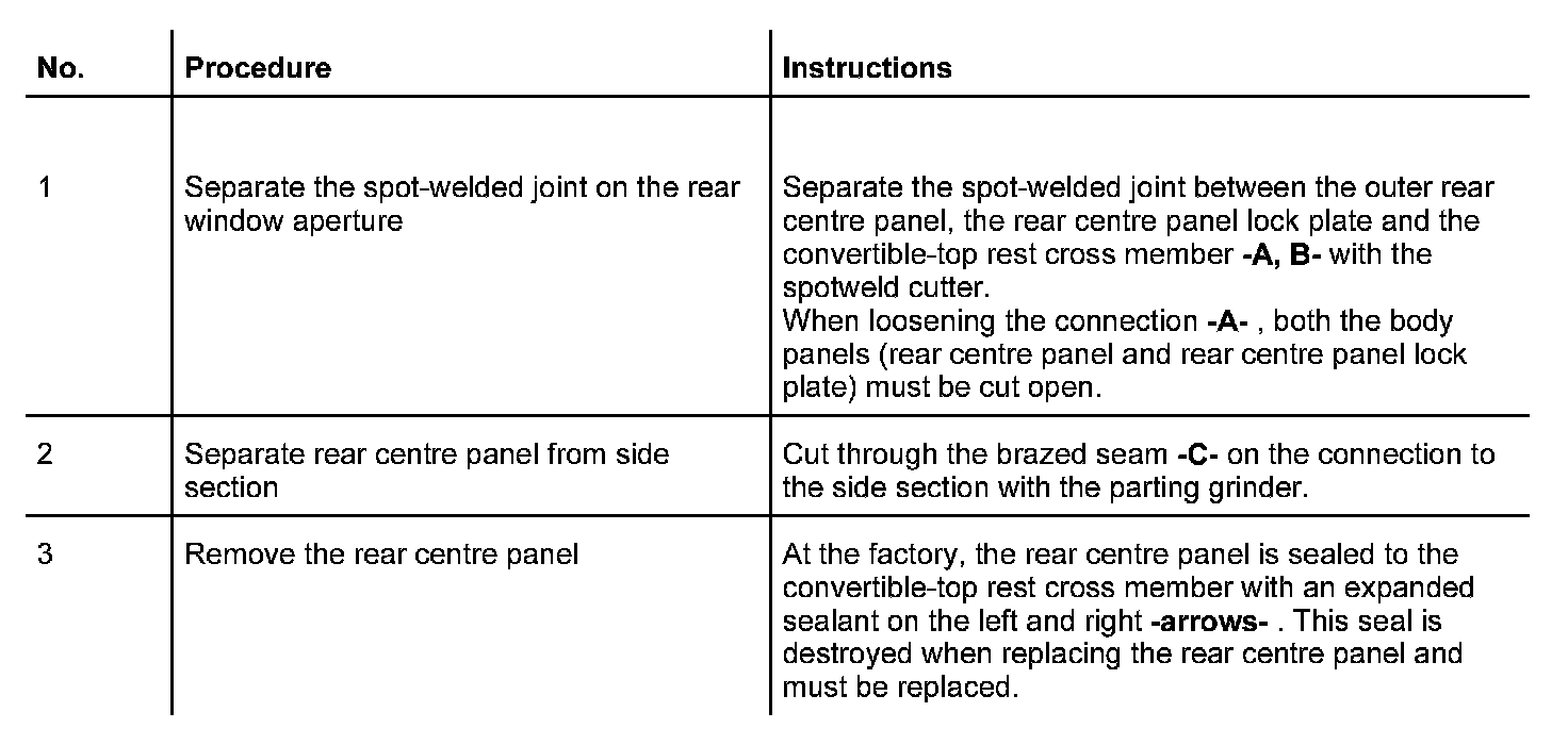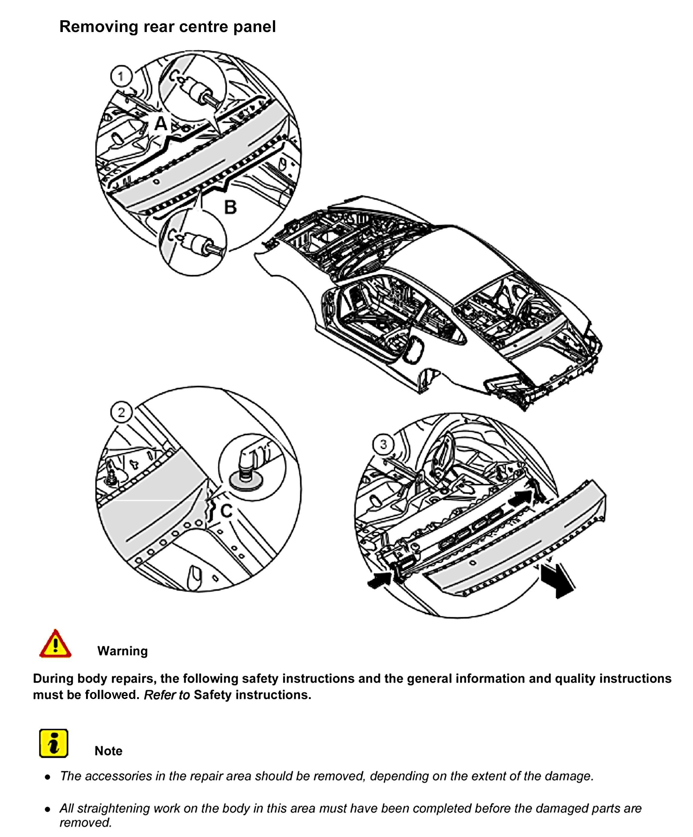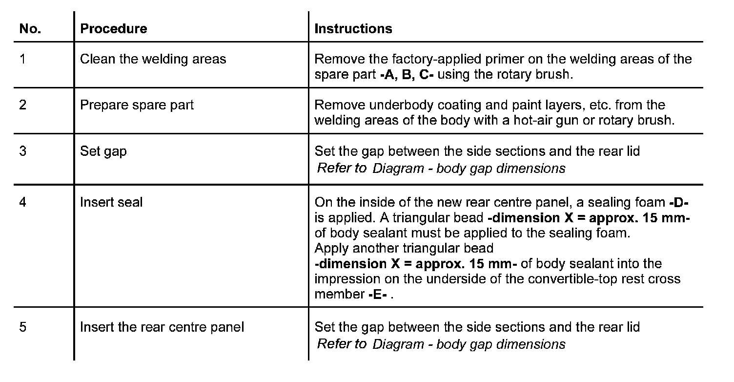 The following spare body parts are required for the repair Replacing rear centre panel: