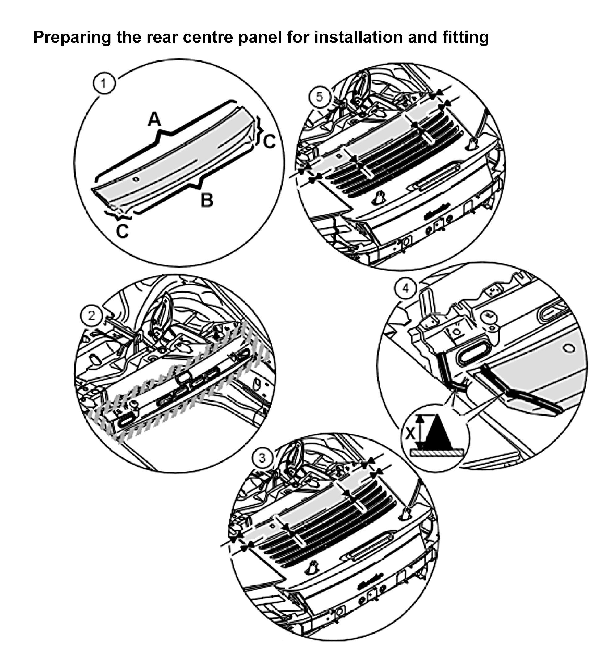 Preparing the rear centre panel for installation and fitting