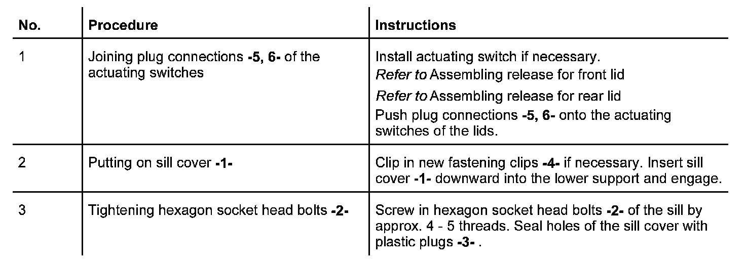Removing and Installing Inner Sill (Driver's Side)