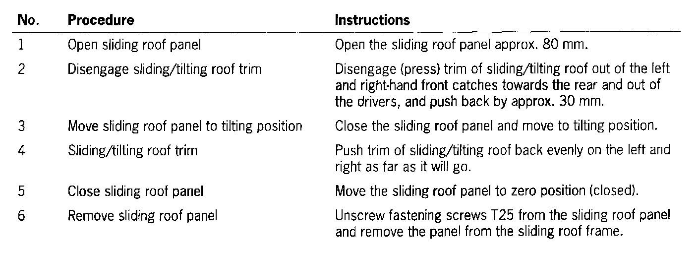 - Push the sides of the inner panels out of the sliding roof frame inwards (centre of the vehicle).