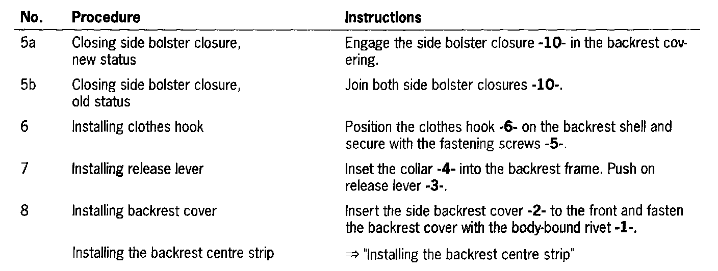 Replacing Covering For the Front Backrest Frame