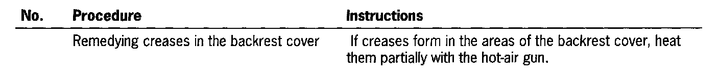 - If creases form, only short partial warming with the hot-air gun is permissible. The hot-air temperature of approx. 50 degrees Celsius (122 Fahrenheit) must always be observed.
