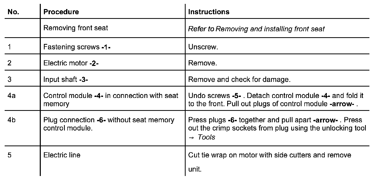 Removing And Installing Electric Motor For The Front Seat Height Adjustment