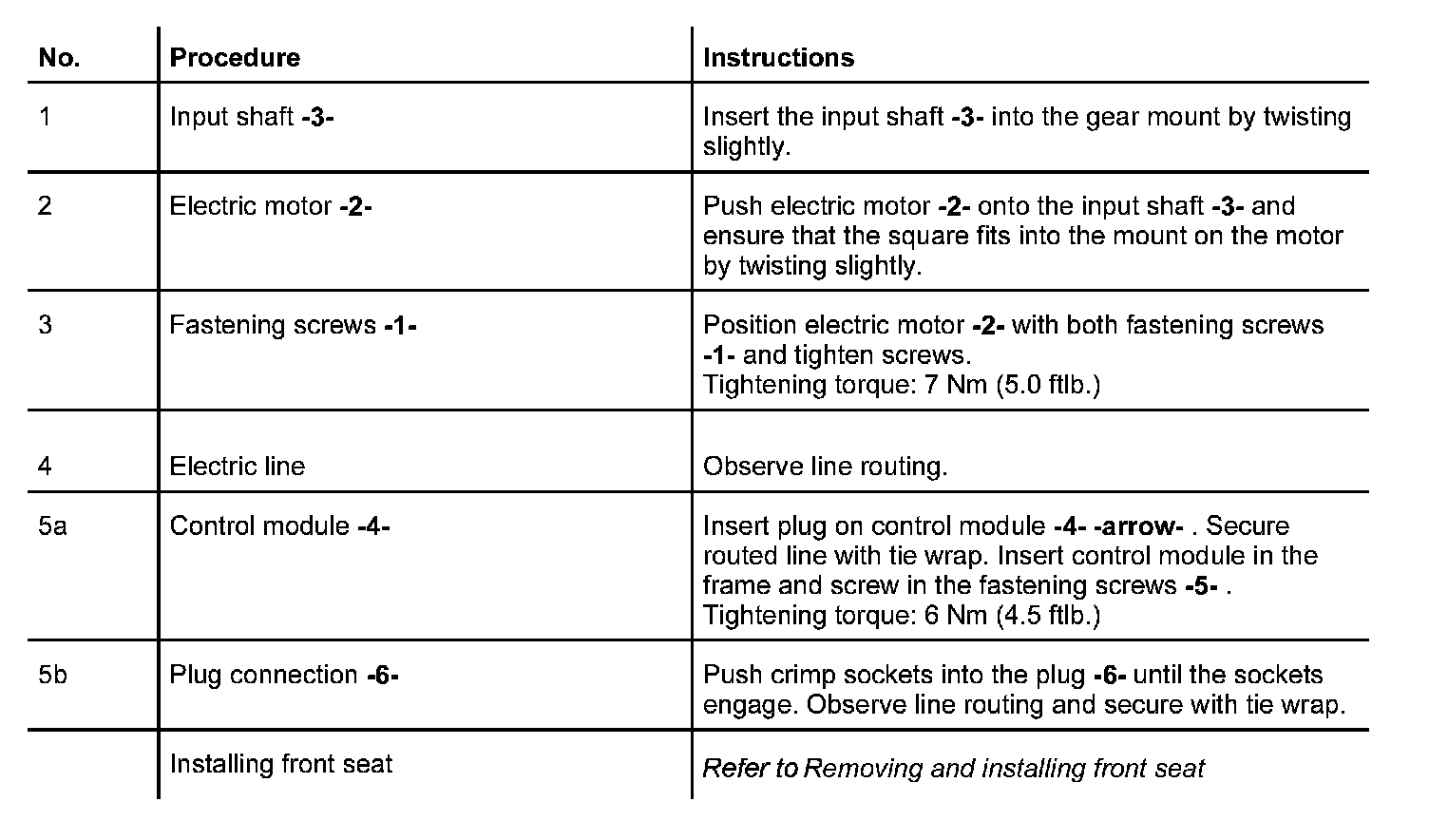 Removing and Installing Electric Motor For the Front Seat Height Adjustment