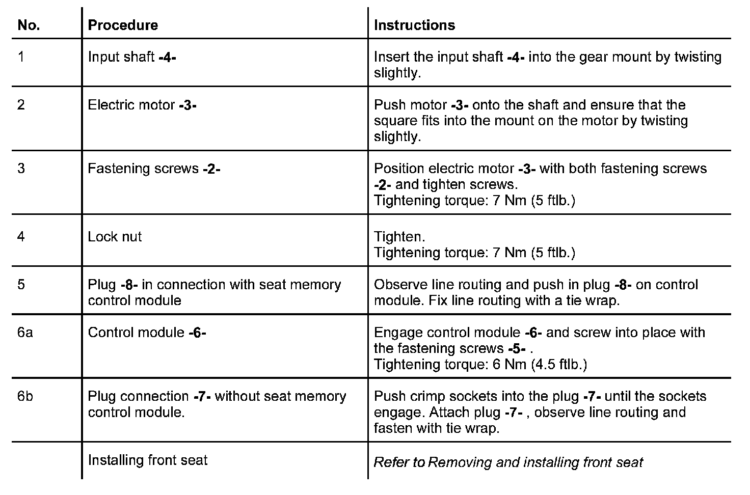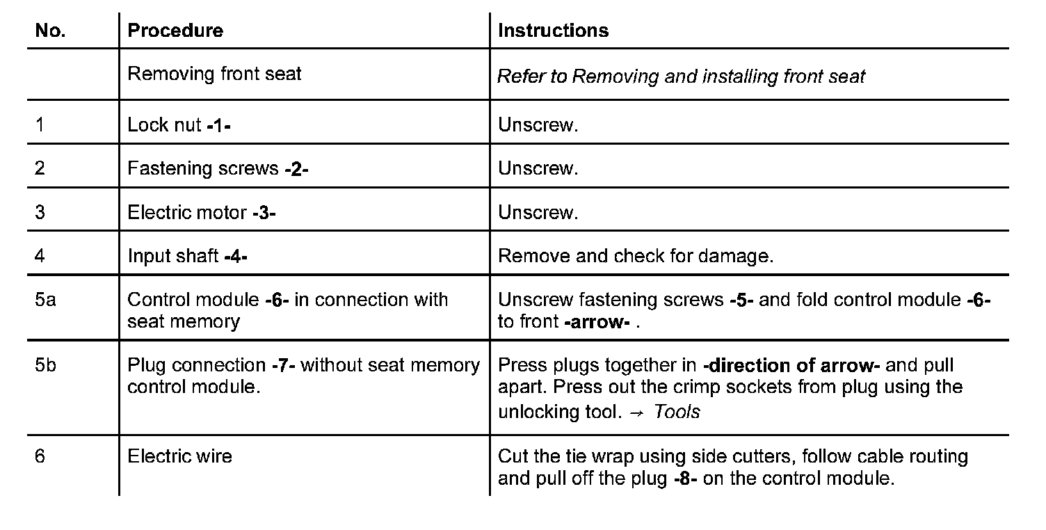 Removing and Installing Electric Motor For the Seat Adjustment