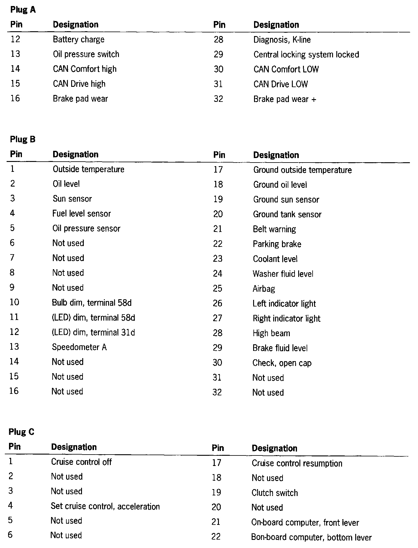Connector Assignment Instrument Cluster