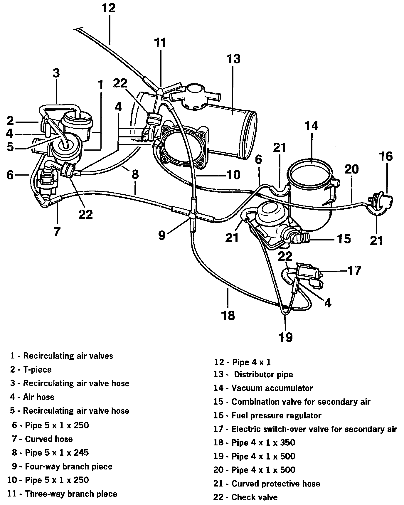 NOTE: The vacuum line, Item 12, leads to the Tiptronic transmission; it is not present in the manual transmission version.
