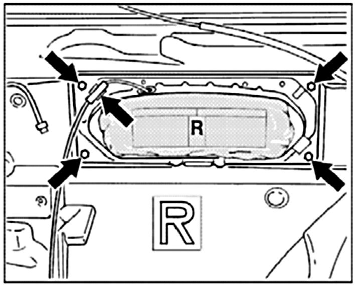 1. Install airbag unit with the inscription "R" in the right-hand door and fasten.