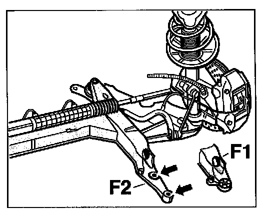 - The previous front-axle cross member -F1-, with one fastening screw securing it to the body (per side) is still available as a spare part.