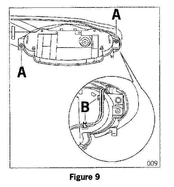 3.5 Seal the hole on the service grommet (B) with adhesive compound.