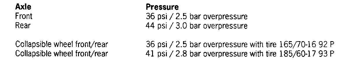 This tire pressure applies only to the tire makes and types approved by Porsche, and is specified for cold tires (approx. 68° F /20° C). The tire pressures must never be lower than the specified values.