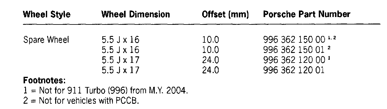 Rubber valves, not for 18-inch Turbo I wheels, Part Number - 900 265 001 50 and 000 044 600 00. Steel valves, for 18-inch Turbo I and SportTechno wheels, Part Number - 993 361 073 00. Always observe any possible instructions concerning the rolling direction and/or specifying which side the tires must be mounted on.