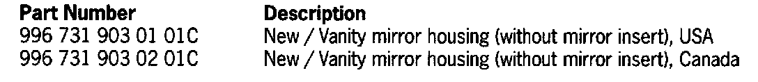 In the event of a complaint, replace the vanity mirror. Previously only the complete sun visor was available. The vanity mirror housing is now available as an individual part.