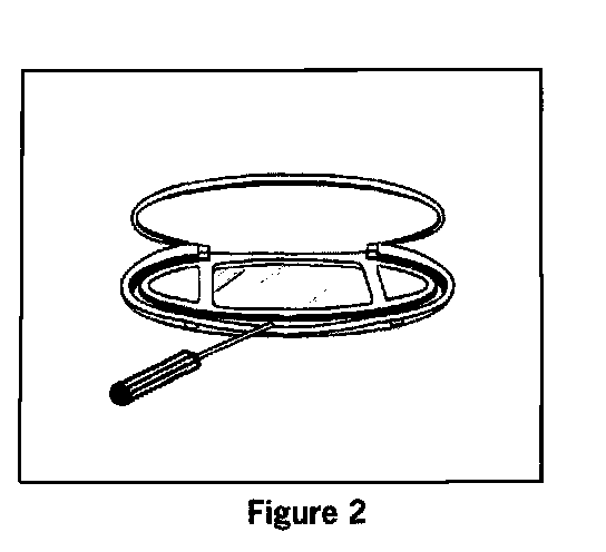 7. Unclip the mirror insert from the previous vanity mirror with a small slotted screwdriver or narrow plastic wedge (Figure 2).