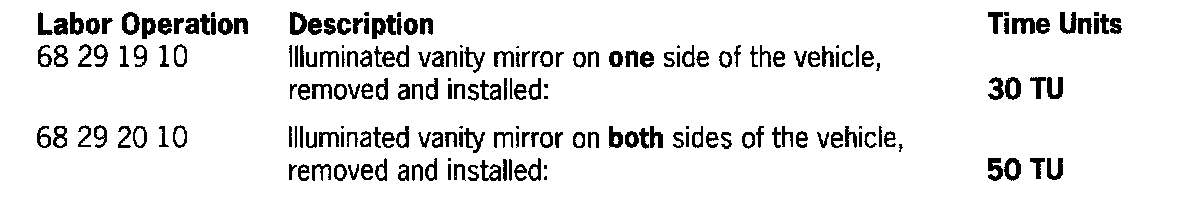 In addition to defective bulbs or a blown fuse (fuse C3), the problem can also be caused by a disengaged contact spring in the vanity mirror. The contact spring disengages when the opened cover of the vanity mirror is "overpressed" past the end position.