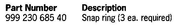 In the event of a complaint, a snap ring, Part Number, 999 230 685 40, must be fitted in the groove of the plug-in couplings in the area of the plenum chamber, underbody and transmission (Figure 1, Items 1, 2 and 3). The clutch system must then be bled. The procedure for fitting the snap rings is described in this bulletin.