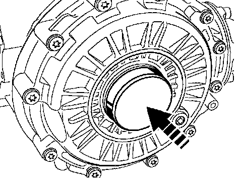 7. Remove sealing ring with special tools VW 771/1 and VW 771/37 (Figure shows removed transmission).