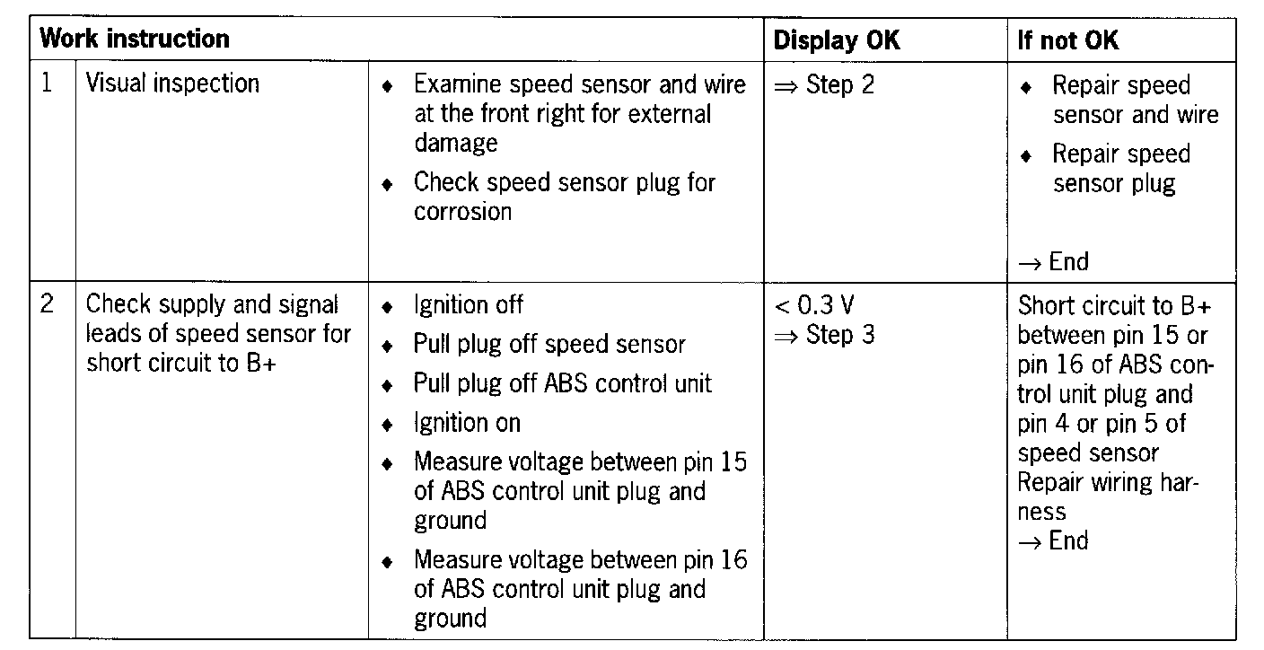 - Short circuit to B+/ground or open circuit between control unit and speed sensor