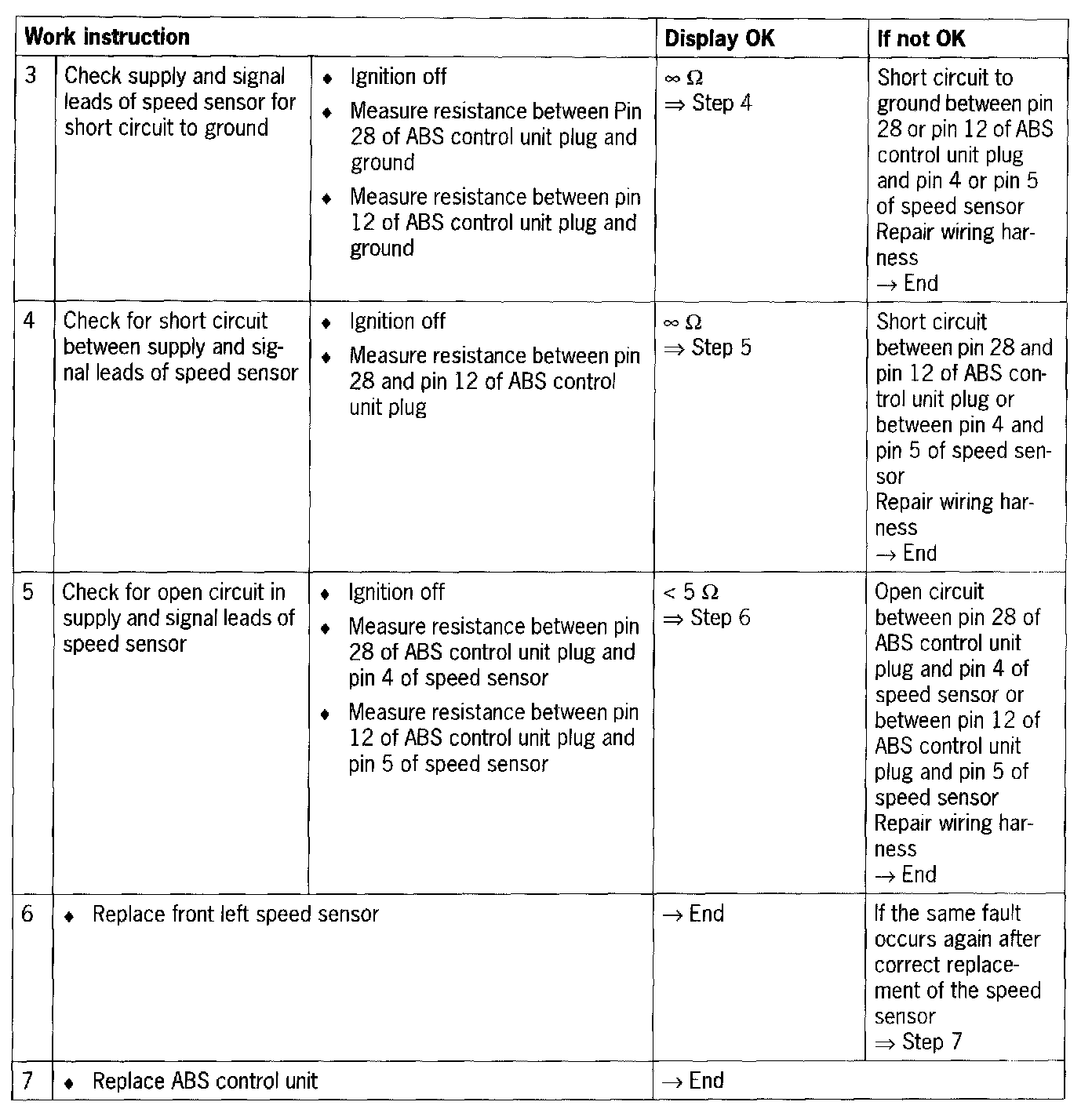 - Short circuit to B+/ground or open circuit between control unit and speed sensor