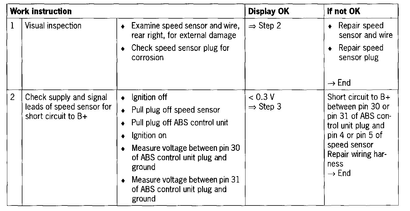 - Short circuit to B+/ground or open circuit between control unit and speed sensor