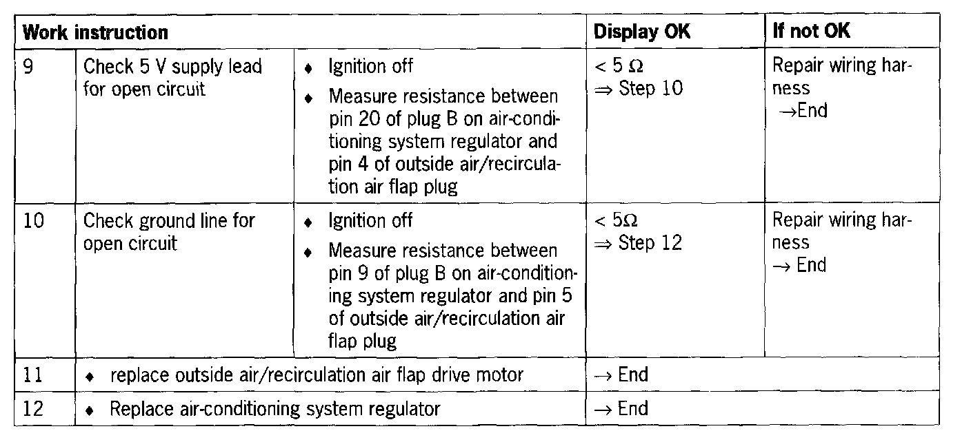 - Short circuit to B+/ground/between wires or open circuit in wiring between air-conditioning system regulator and outside air/recirculation air flap
