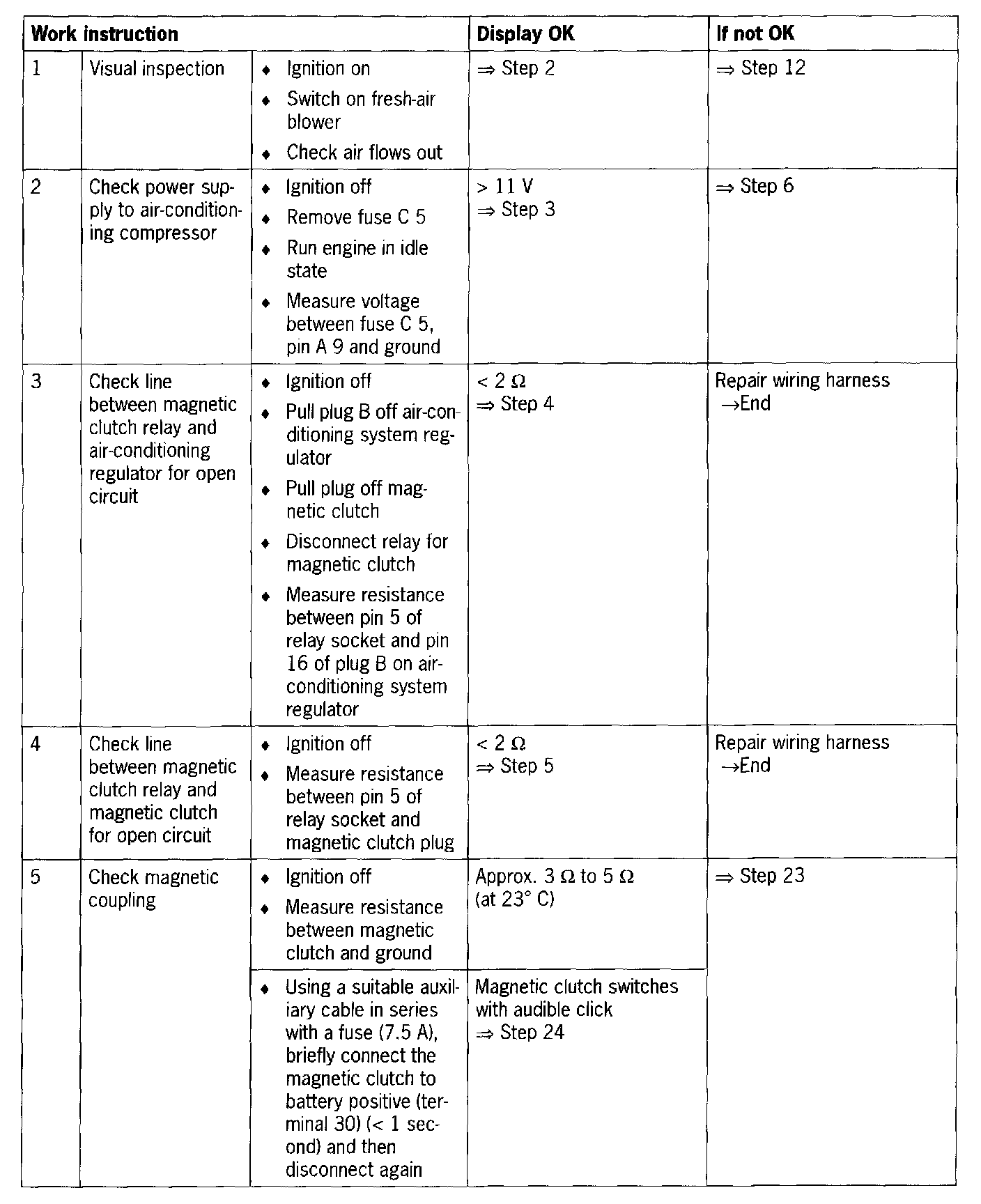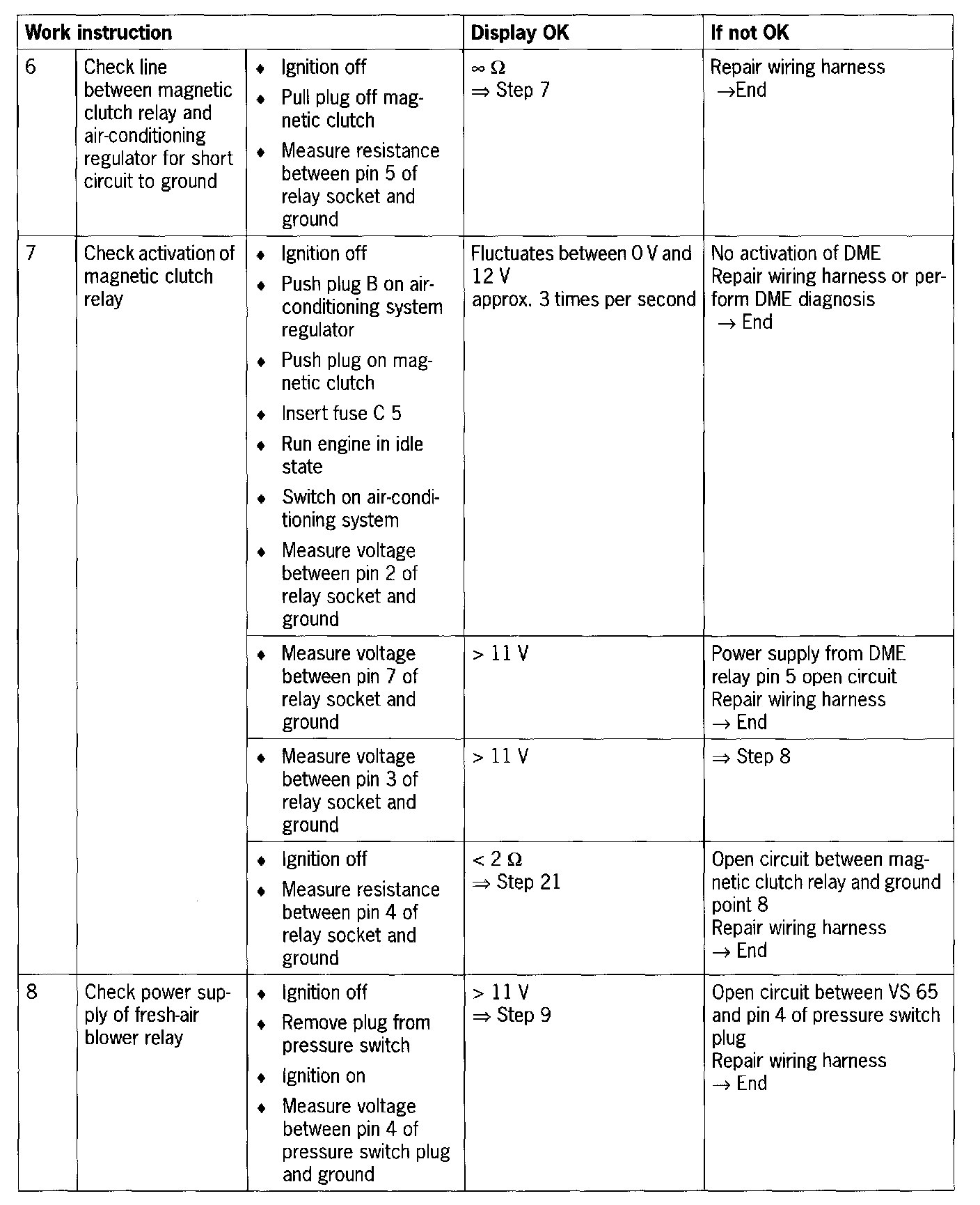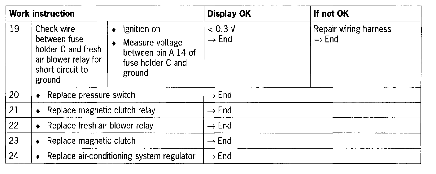 - Line fault between pressure switch, fresh-air blower relay, magnetic clutch relay, DME control module or air-conditioning compressor