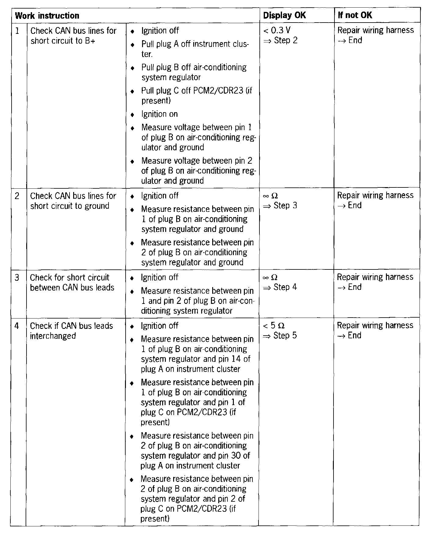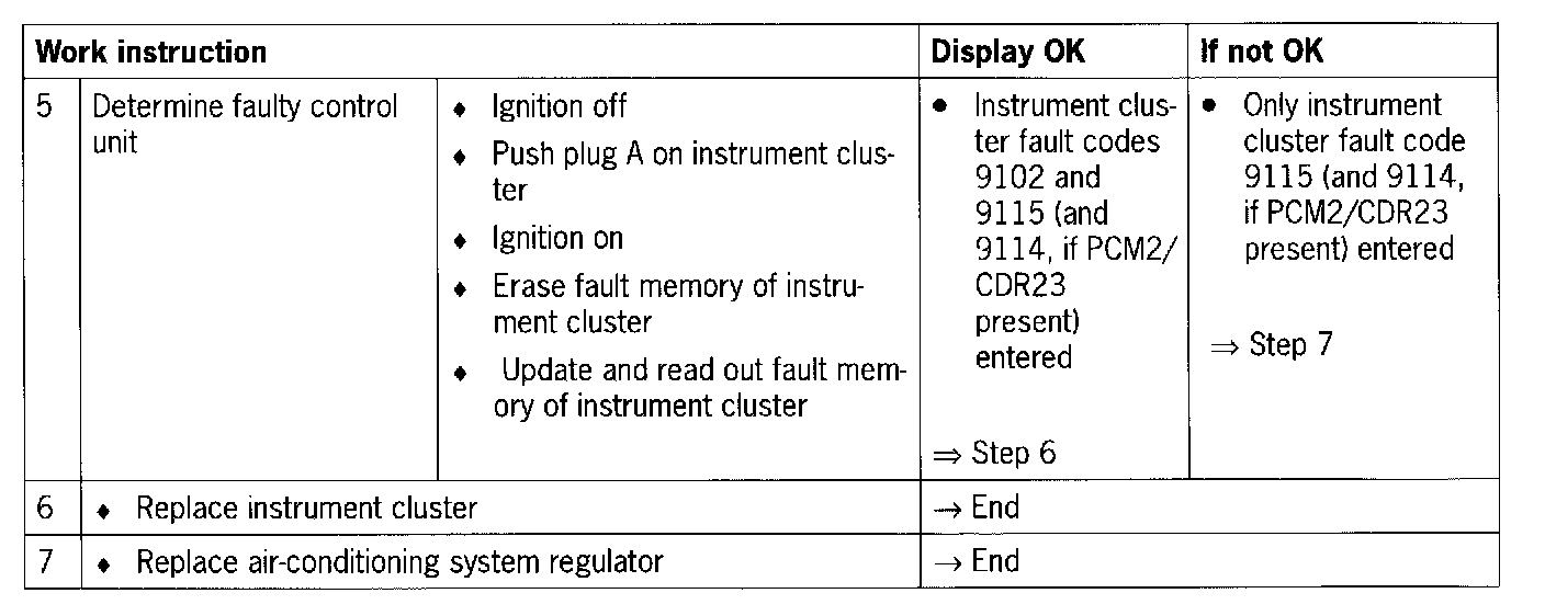 If both CAN comfort leads between air-conditioning system regulator and instrument cluster are open circuit, then no communication is possible between the Porsche System Tester II No. 9588 and the air-conditioning system regulator.