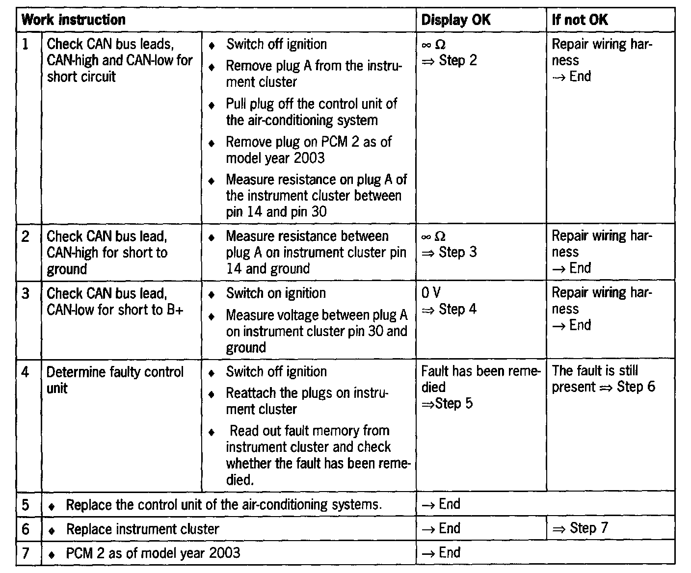 NOTE: During the troubleshooting, the plugs on the instrument cluster are re-attached in Step 4 while the plugs on the air-conditioning system control unit remain removed. Due to the system, this causes the fault code "9115 air-conditioning control unit" to be entered in addition into the fault memory of the instrument cluster.