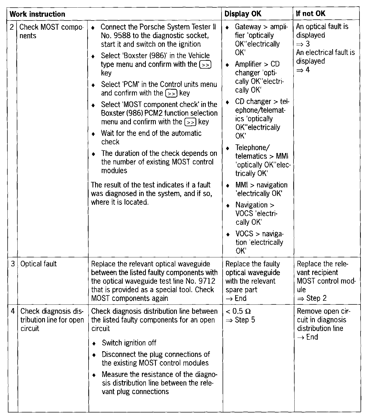 - The diagnosis distribution line is connected to the following MOST control modules: