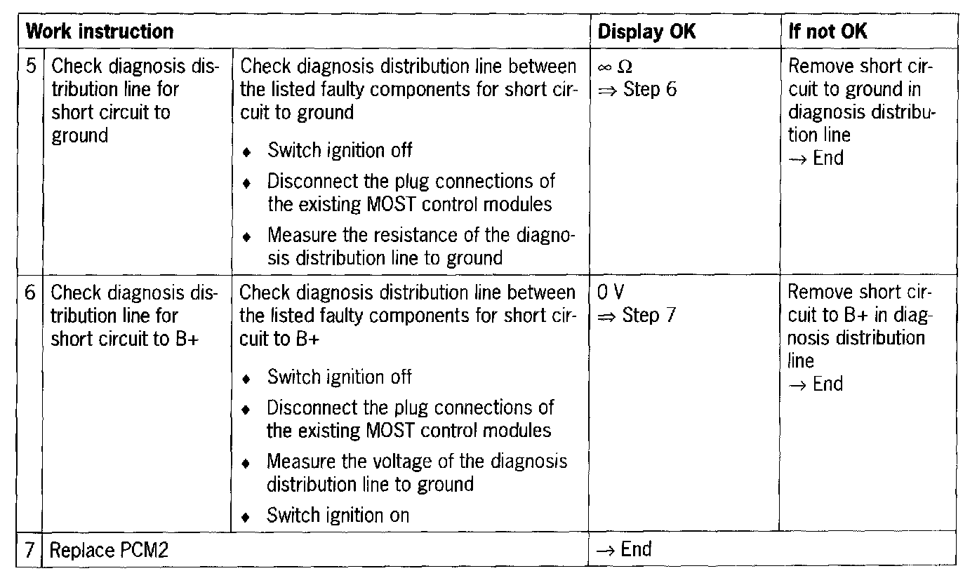 - Diagnosis distribution line: short circuit to ground/B+ or open circuit