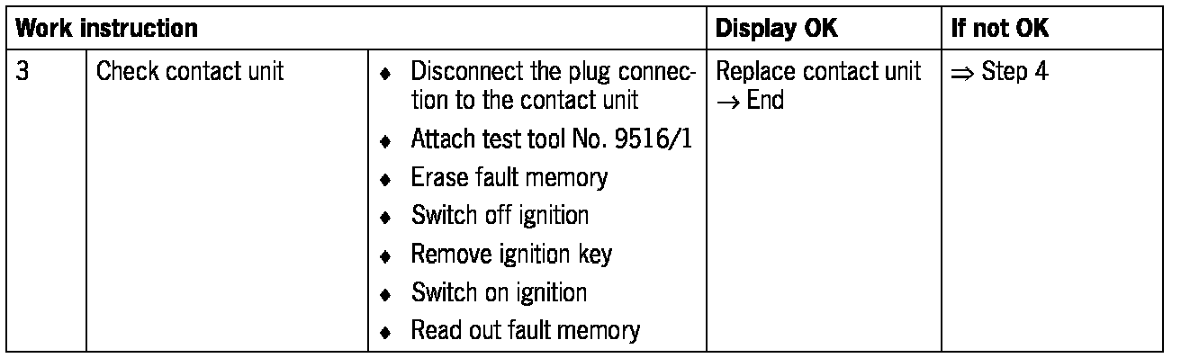 NOTE: If the fault memory is cleared, the ignition must be switched off, the ignition key removed and the ignition switched on again in order to check the fault path. Only in this way is another self-test carried out.