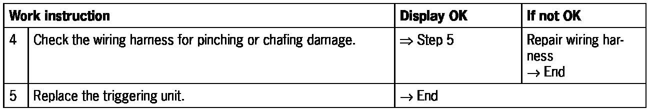 - Short circuit to B+/ground or open circuit in the wiring between the driver's airbag unit and the airbag triggering unit