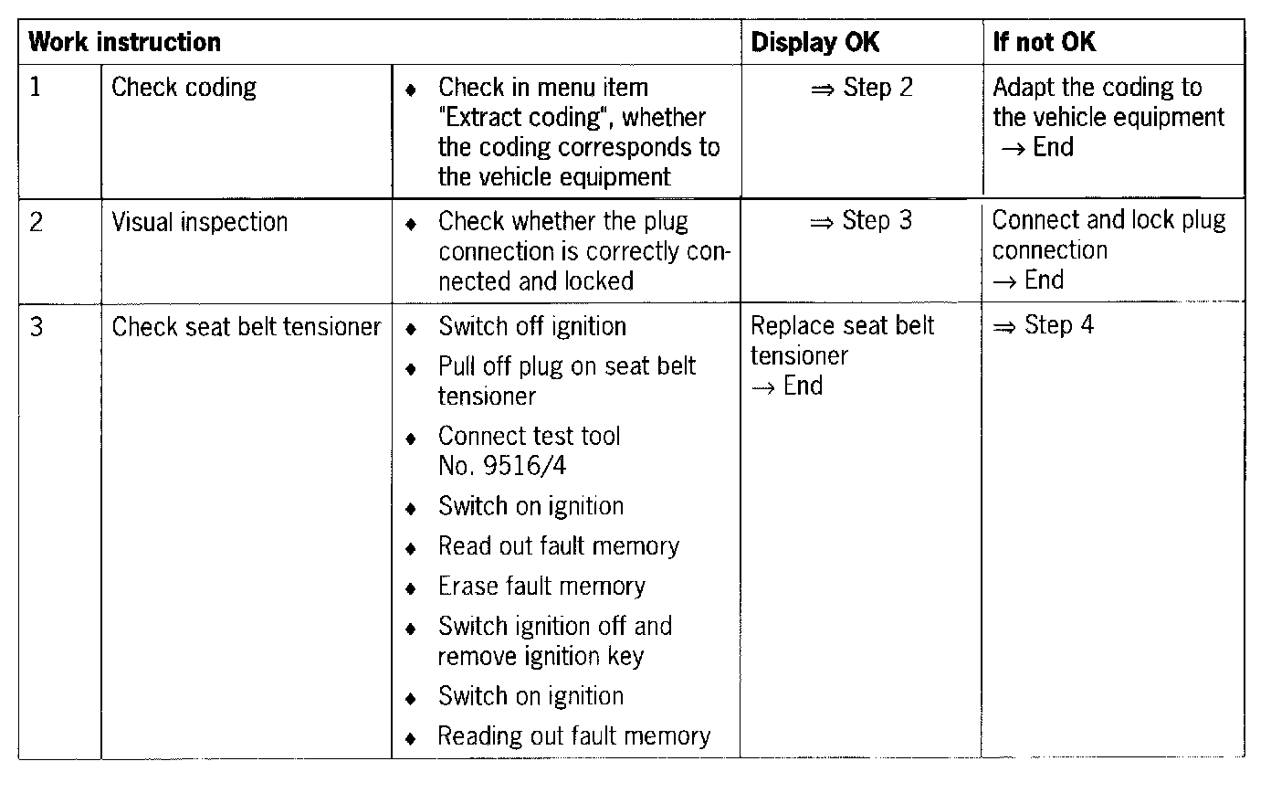 - Short circuit to B+/ground or open circuit in the wiring between the driver's seat belt tensioner and the control unit